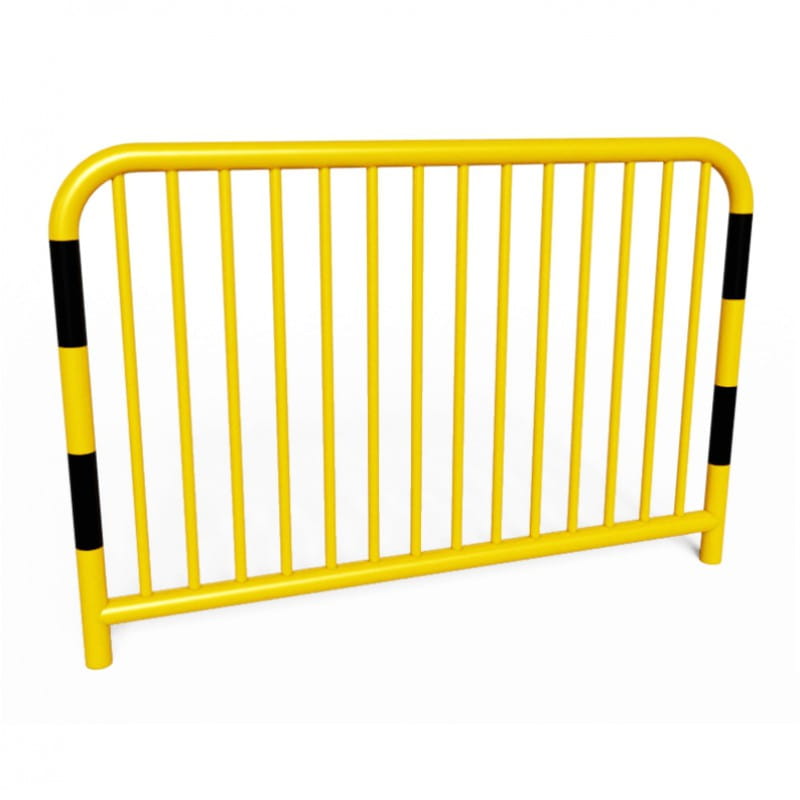 długość 200 cm x wysokość 110 cm, średnica rury ramy Ø 60,3 mm, a poprzeczki (przeciąg) ø 48,3 mm, szczeblinki ø 20,0 mm - do wbetonowania, żółta z czarnymi pasami